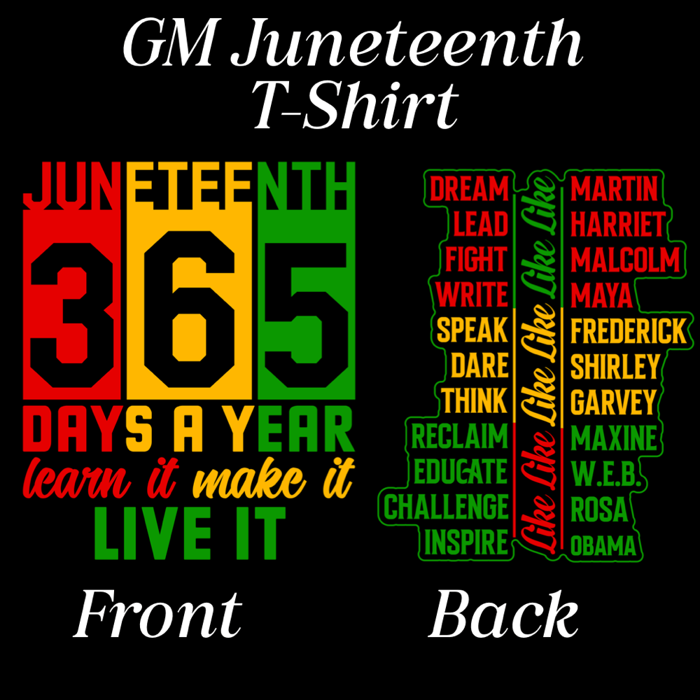 On the front, the powerful slogan "Juneteenth 365 Days a Year: Learn It, Make It, Live It" serves as a daily reminder to honor the legacy of freedom and the ongoing journey toward equality. Turn around, and the back showcases the word "LIKE," surrounded by the names of influential Black leaders such as Martin Luther King Jr., Barack Obama, Harriet Tubman, Malcolm X, and more. This thoughtful design pays tribute to the trailblazers who have shaped history and continue to inspire generations.
